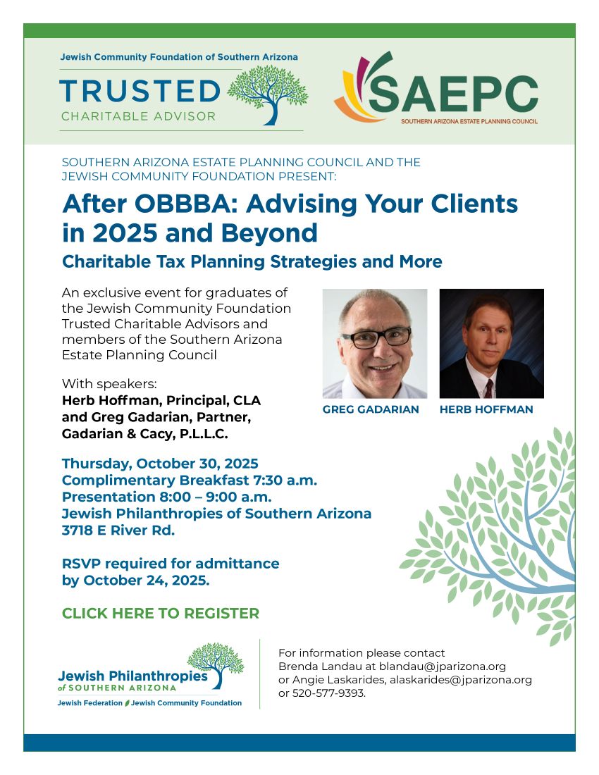 Location: Jewish Philanthropies of Southern Arizona 3718 E River Rd.